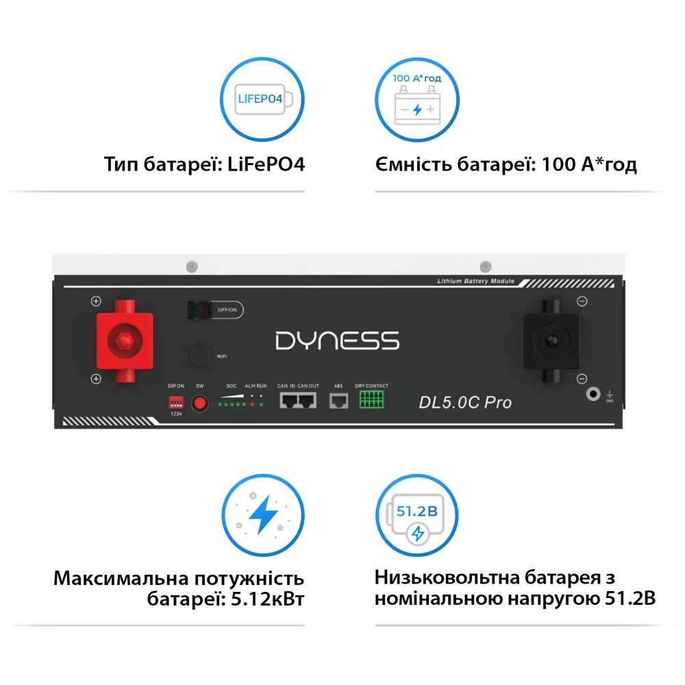 Аккумулятор Dyness DL50C Pro — это интеллектуальный литий-железо-фосфатный (LiFePO4) накопитель энергии нового поколения. Благодаря компактному дизайну и продвинутой системе управления BMS, этот модуль обеспечивает высокую эффективность и безопасность для автономных и гибридных солнечных систем.