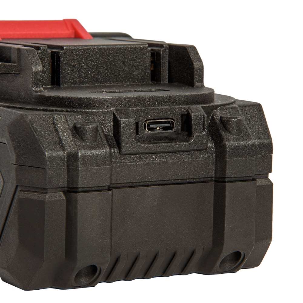 - Оптимальная емкость (4 А·ч): Этого запаса энергии достаточно для длительной работы с такими инструментами, как перфораторы, угловые шлифмашины (болгарки), дисковые и цепные пилы. При этом вес батареи остается комфортным (630 граммов), чтобы не перегружать руки оператора.