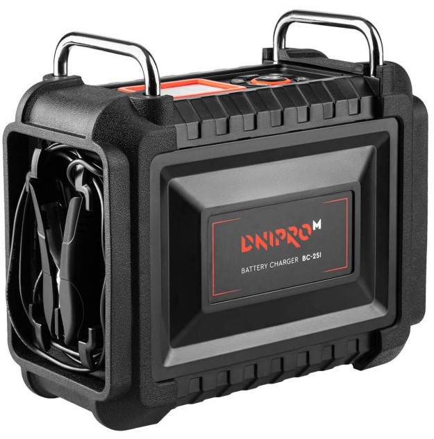 Зарядное устройство Дніпро-М BC-25i — это профессиональная зарядная станция, сочетающая в себе высокую мощность и умные технологии. Если обычные зарядки выдают 5-10 Ампер, то BC-25i способен выдавать до 25 Ампер (при 12В), что позволяет обслуживать огромные аккумуляторы грузовиков, тракторов и спецтехники емкостью до 500 А·ч. Устройство универсальное: оно автоматически работает как с 12В, так и с 24В системами.