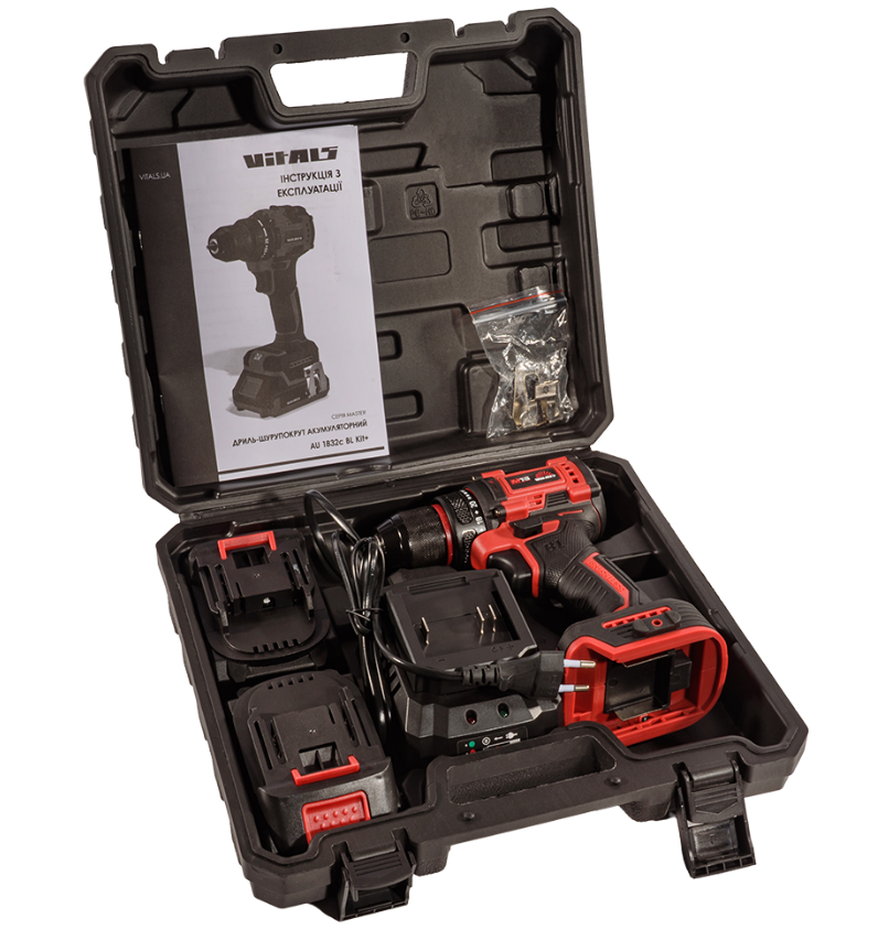 Аккумуляторный шуруповерт Vitals Master AU 1832c BL Kit Plus — это максимальная комплектация для интенсивного профессионального использования на платформе M18. Главное преимущество версии «Plus» — наличие двух аккумуляторов по 2.0 Ач. Это обеспечивает непрерывный рабочий цикл: пока одна батарея в работе, вторая восстанавливает заряд. В сочетании с бесщеточным двигателем это делает Вас полностью независимым от наличия розеток на объекте.