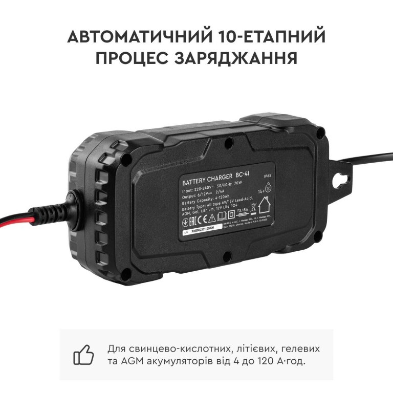 - ✅ Всеїдність: Заряджає все: від свинцево-кислотних і AGM до сучасних LiFePO4 та 6В мото-акумуляторів.